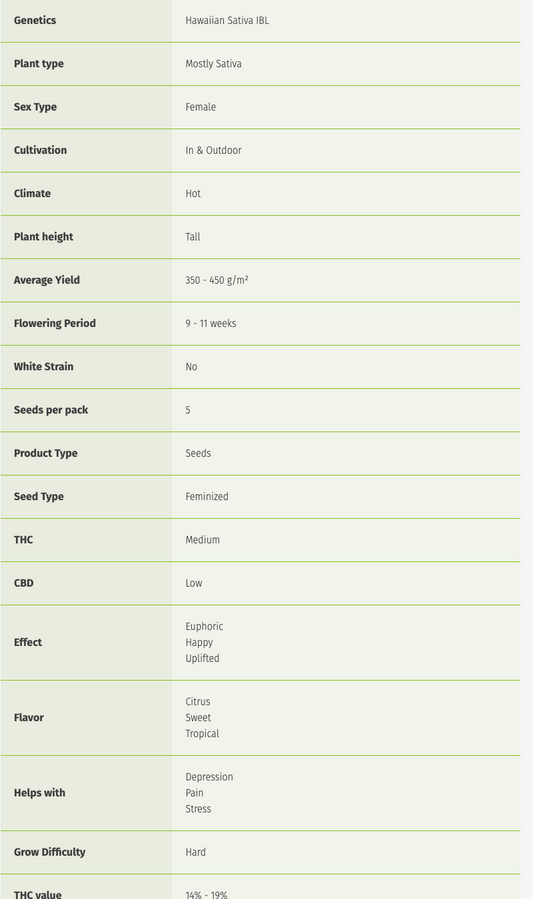 Nirvana Genetics - Hawaii Maui Waui - 5 pack Fem/Photo