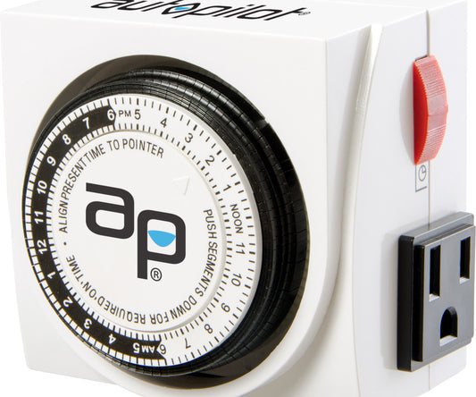 Autopilot Dual-Outlet Analog Grounded Timer, 1725W, 15A, 15-Minute On/Off, 24 Hour